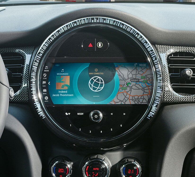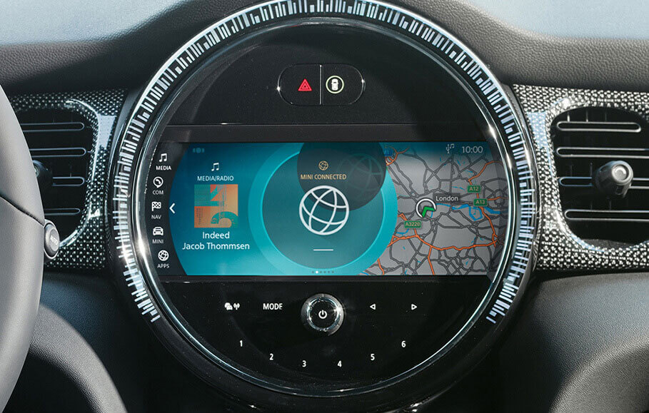 全面升級8.8吋螢幕與Piano Black高光澤飾板,搭載全新MINI Visual Boost中控螢幕介面,中央儀表LED飾環亦採全新導光條設計,在科技感十足的座艙中更添活潑氛圍。