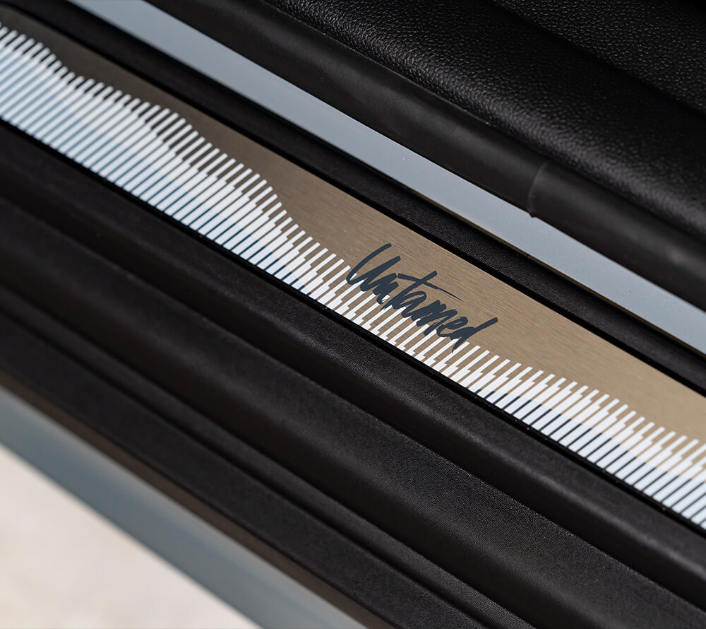 Piano Black黑色高光澤搭配下方手寫風格的Untamed專屬徽飾,帶來精品級質感。