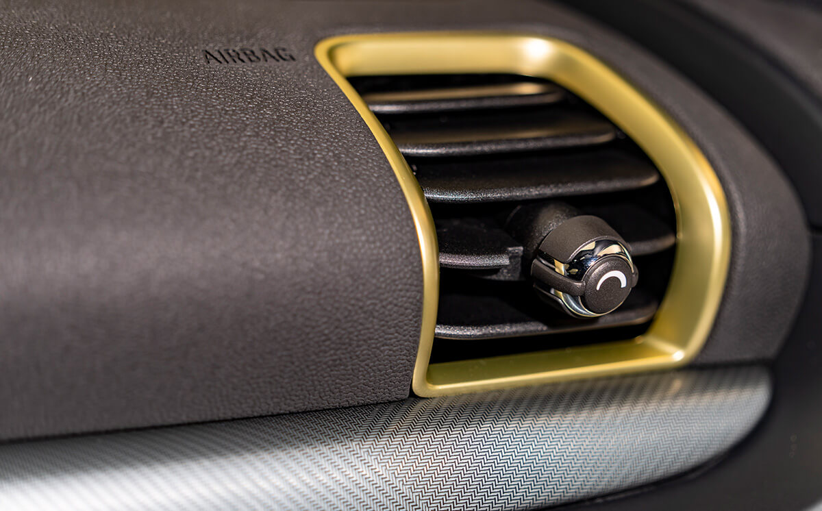 Refined Brass精金元素設計冷氣出風口飾環與外觀設計元素相得益彰,為座艙空間增添個性質感。