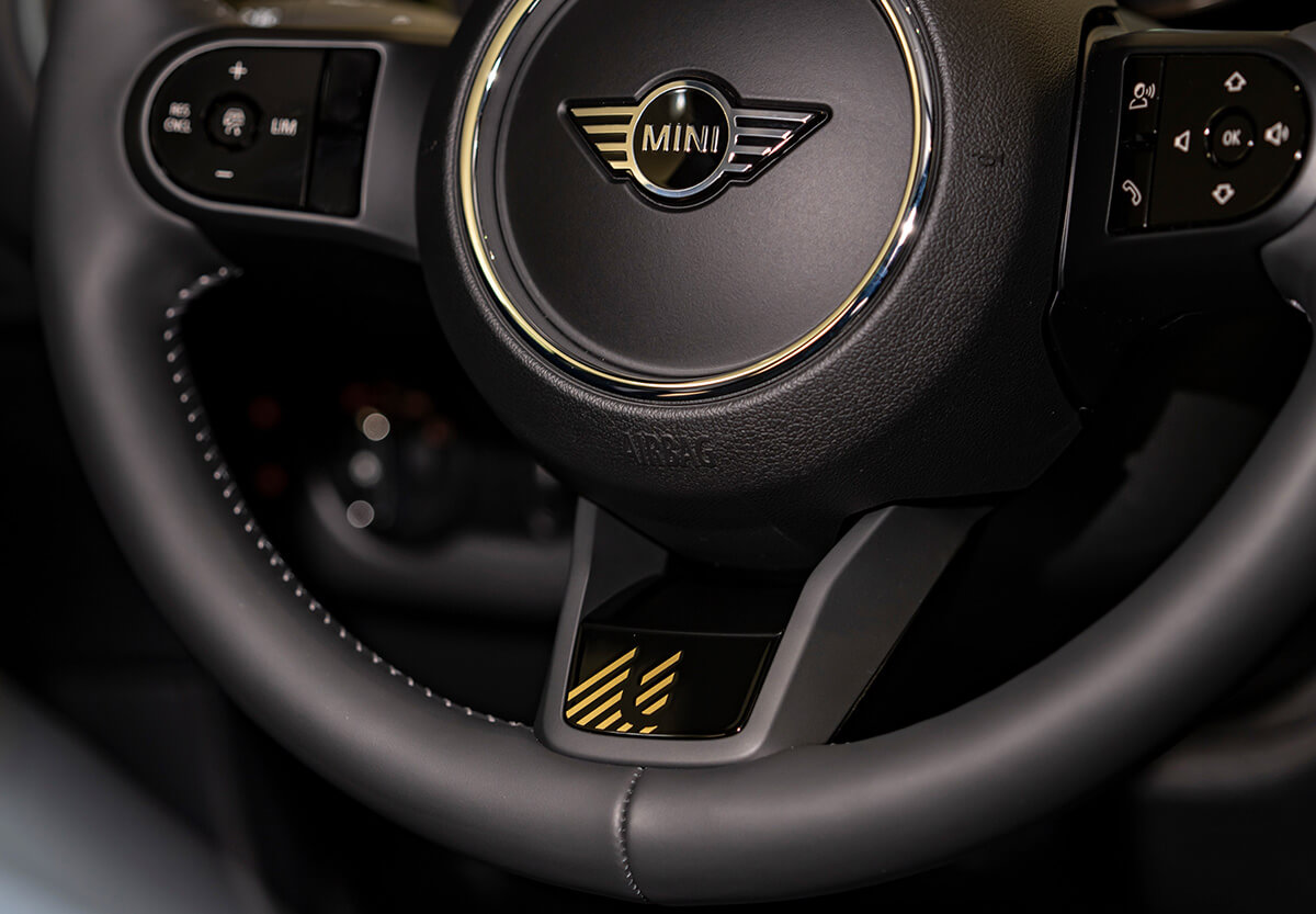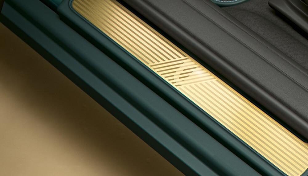 進入MINI Clubman Untold Edition的美學饗宴,從開啟車門遇見Refined Brass精金元素設計的Untold專屬迎賓門檻開始。